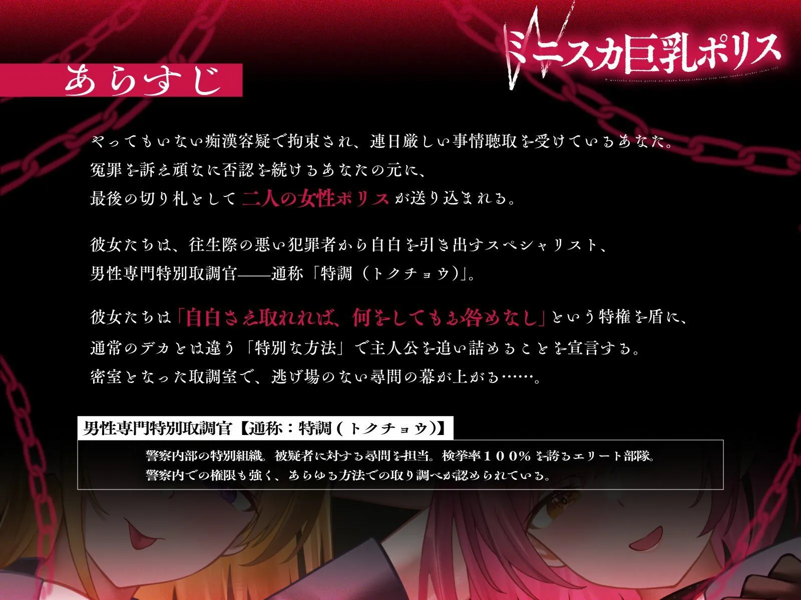 【トラック1】特別取調官のWミニスカ巨乳ポリス登場!密室で始まる淫靡な誘惑取り調べ!(03:18)