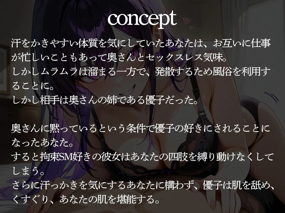 すると四肢を拘束されて自由を奪われてしまい、汗を気にするあなたの身体を優子が「癖になる」と舐め始める。