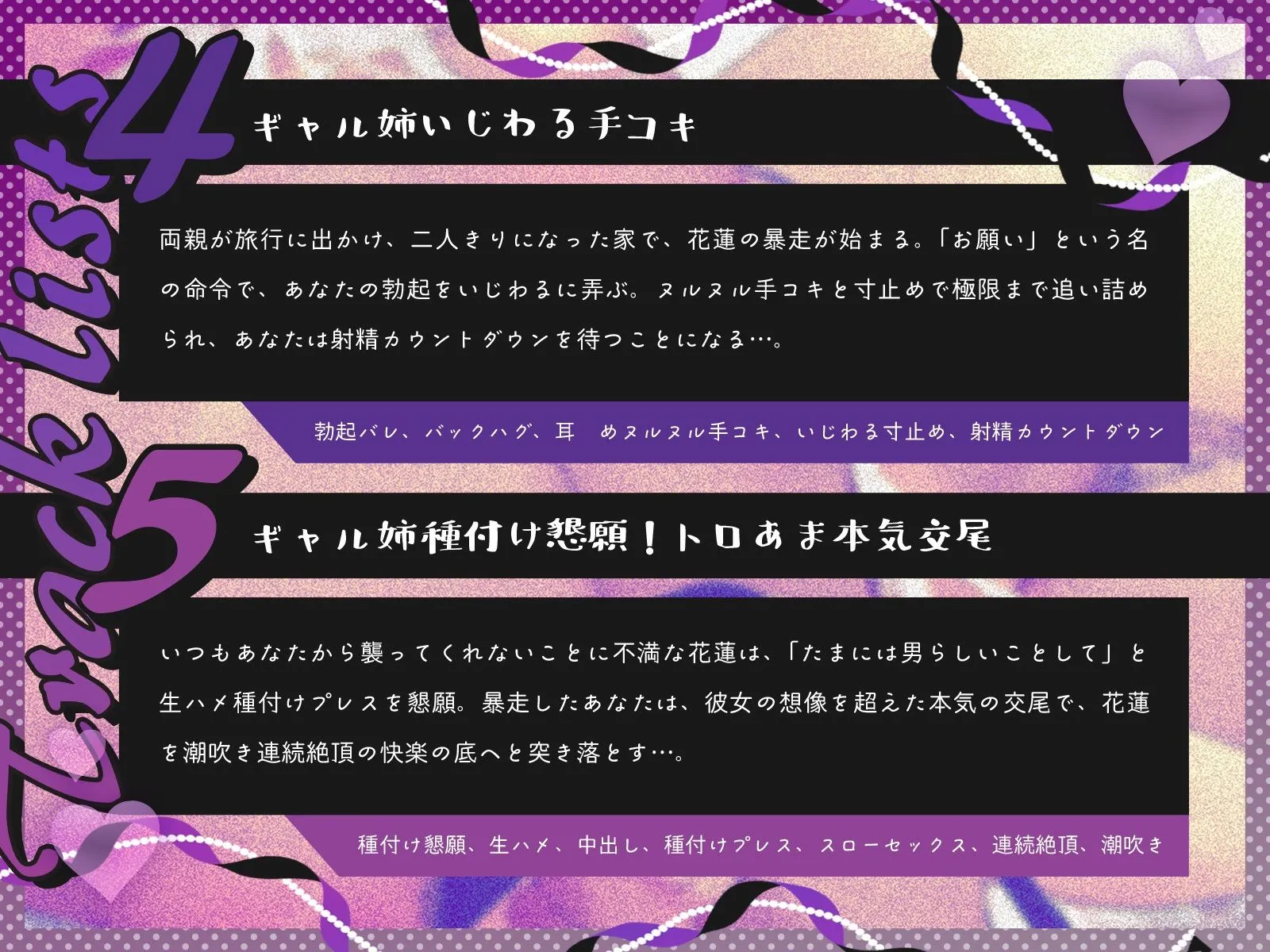 4)ギャル姉いじわる手コキ(勃起バレ、バックハグ、耳舐めヌルヌル手コキ、いじわる寸止め、射精カウントダウン)