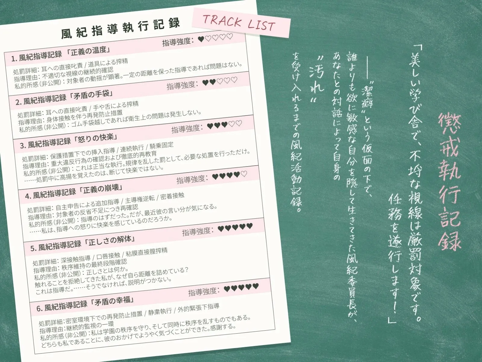 ──‘潔癖’という仮面の下で、誰よりも欲に敏感な自分を隠して生きてきた風紀委員長が、ある男子生徒との対話によって自身の‘汚れ’を受け入れるまでの物語。