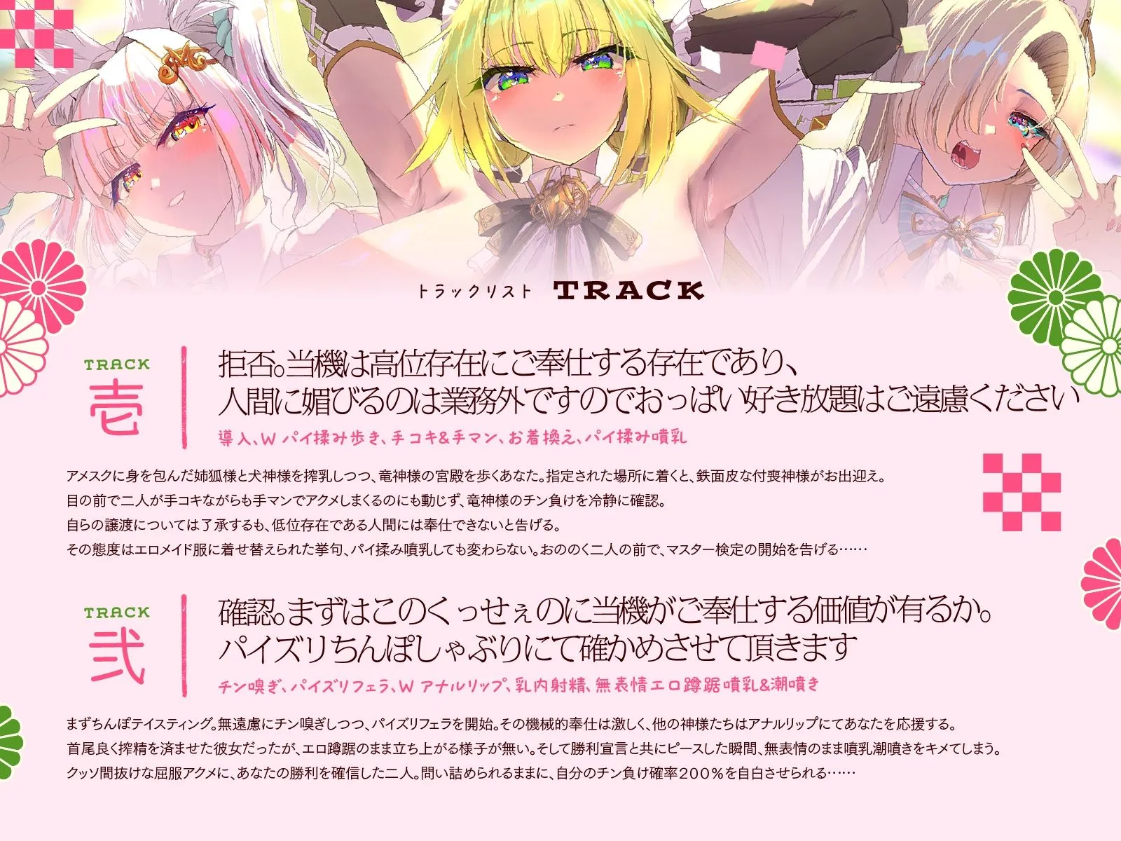 TRACK壱 | 拒否。当機は高位存在にご奉仕する存在であり、人間に媚びるのは業務外ですのでおっぱい好き放題はご遠慮ください(導入、W パイ揉み歩き、手コキ&手マン、お着換え、パイ揉み噴乳)
