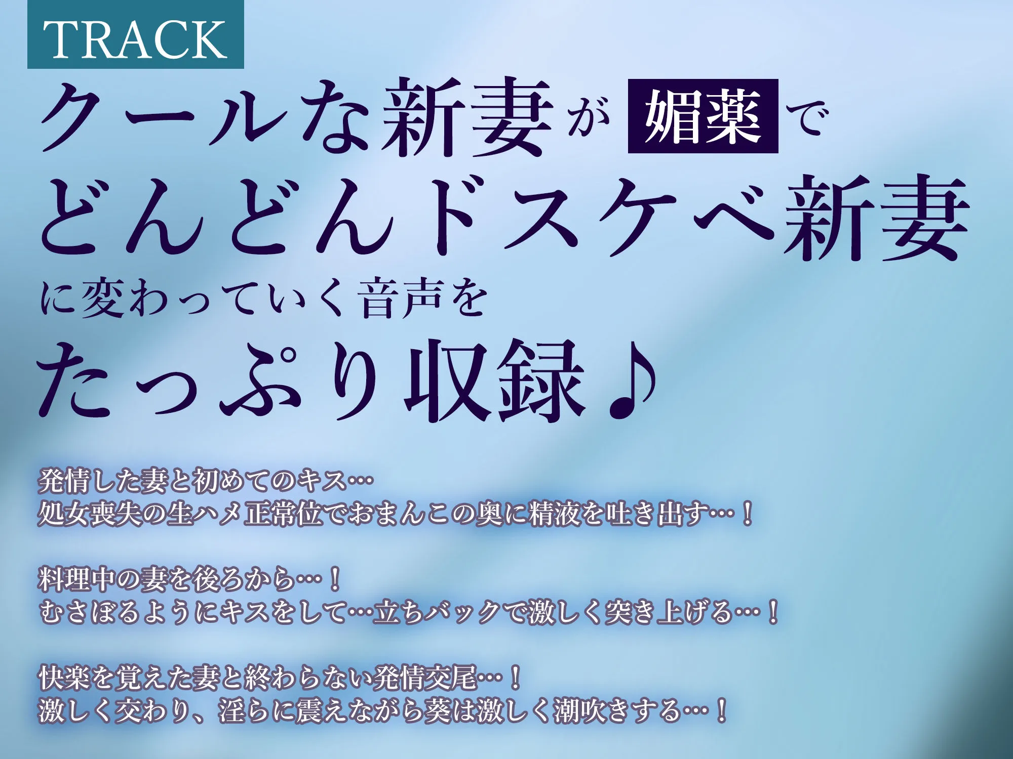 CV:餅梨あむ様が演じる、クールな奥様が媚薬交尾で激しく乱れていく痴態をたっぷりご堪能ください…♪♪