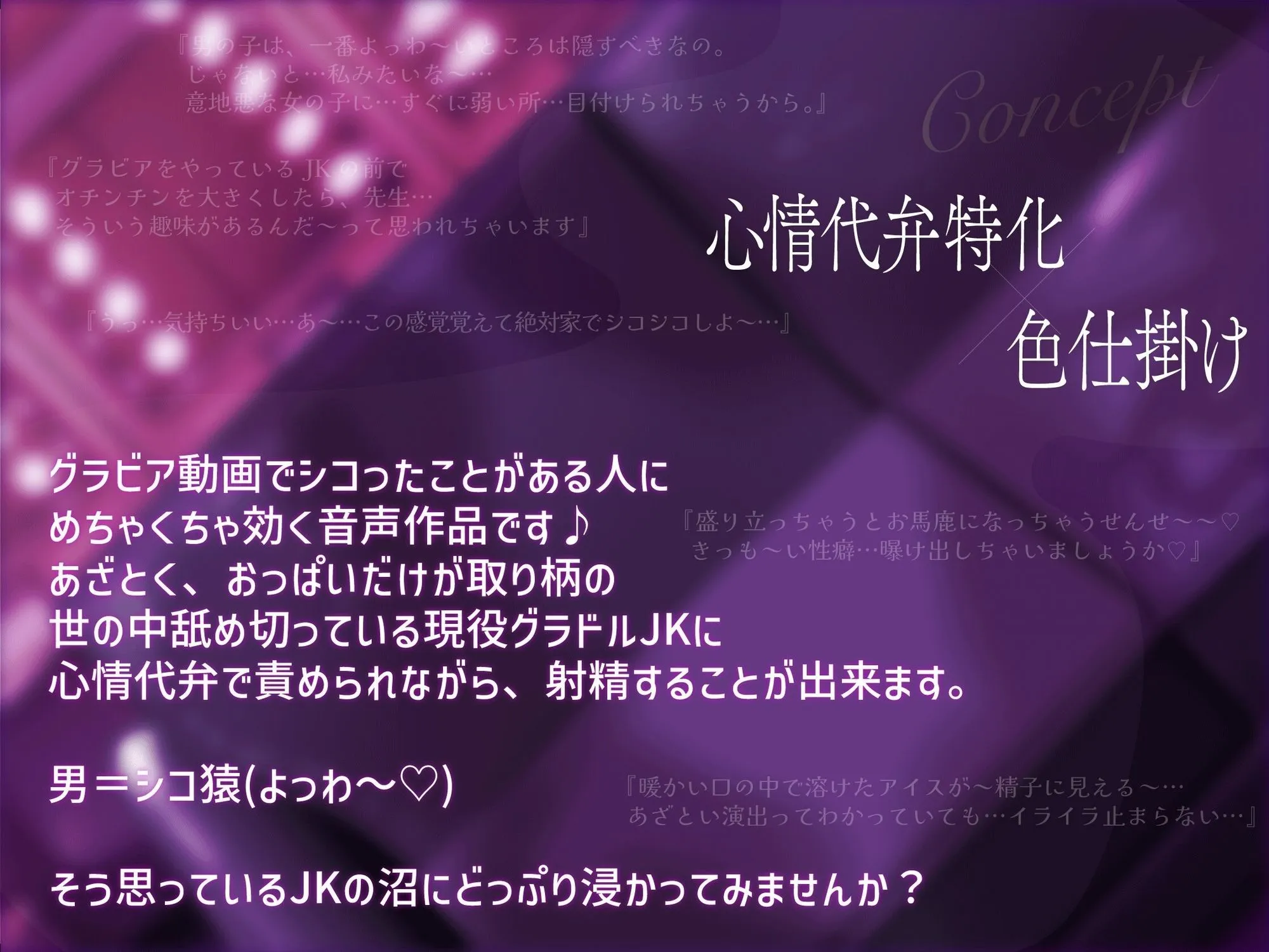 [心情代弁特化]ぴゅっぴゅっぴゅ〜(はーと)現役JKグラドルのチン媚び色仕掛け(はーと)[KU100]