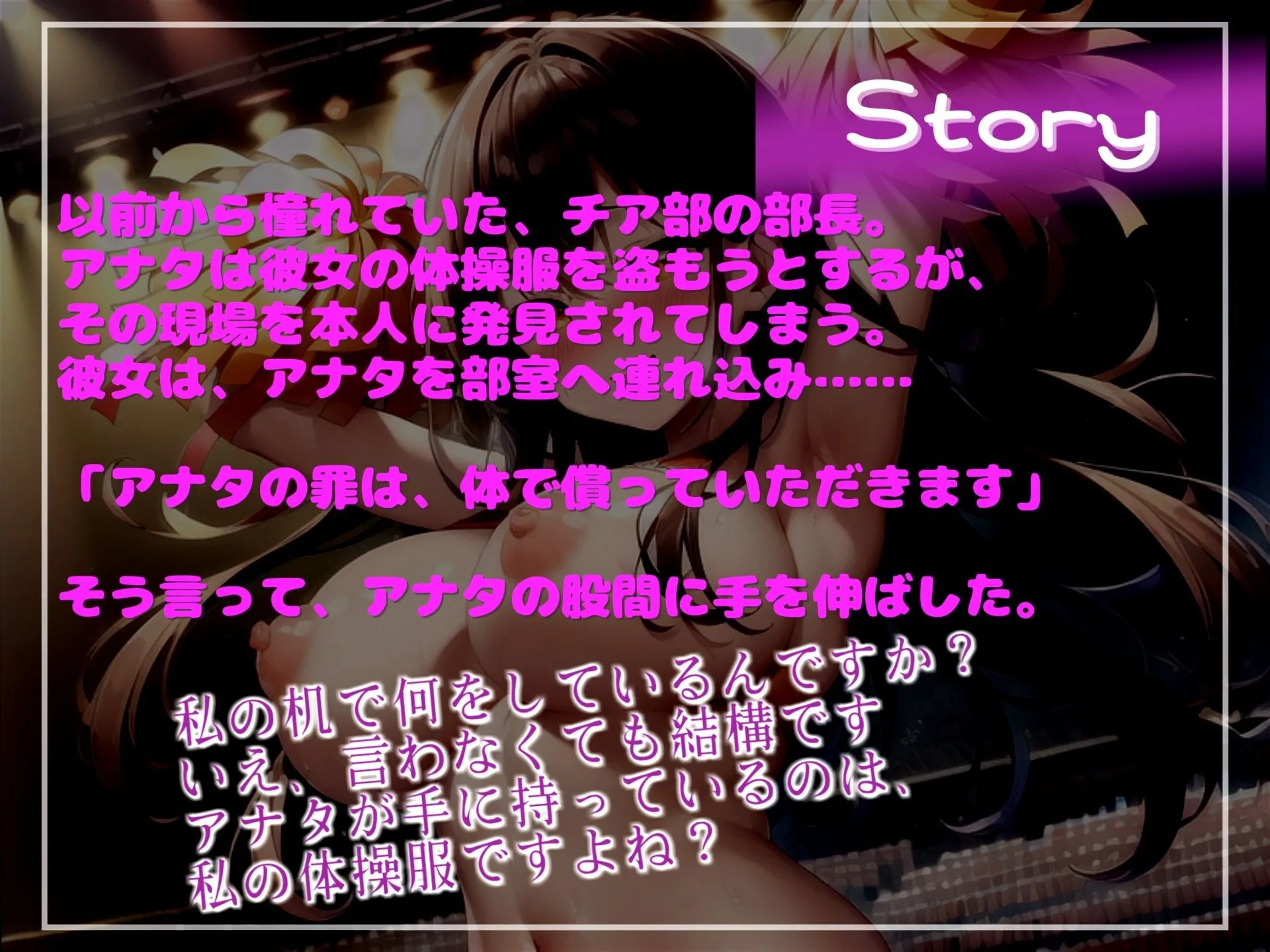 ●アナタの罪は..体で償っていただきます 体操服を盗んだ罪で、チア部部長に現行犯で捕まり部室へ連れ込まれ、射精管理をされ肉便器性奴○として飼われてしまう