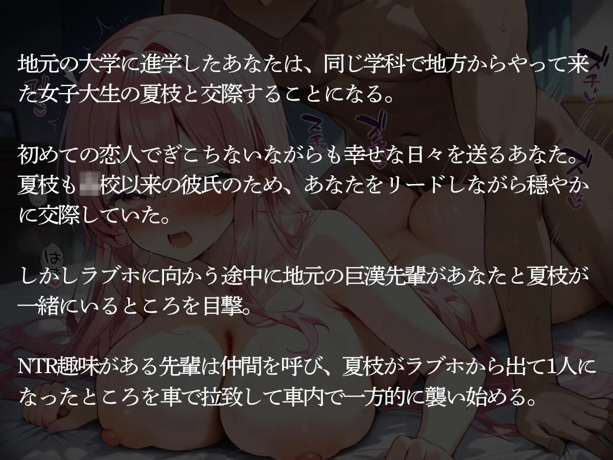 そのまま部屋に連れ込まれた夏枝は、巨漢先輩のデカマラで何度も中出しされて強引な快楽に染め上げられていく。
