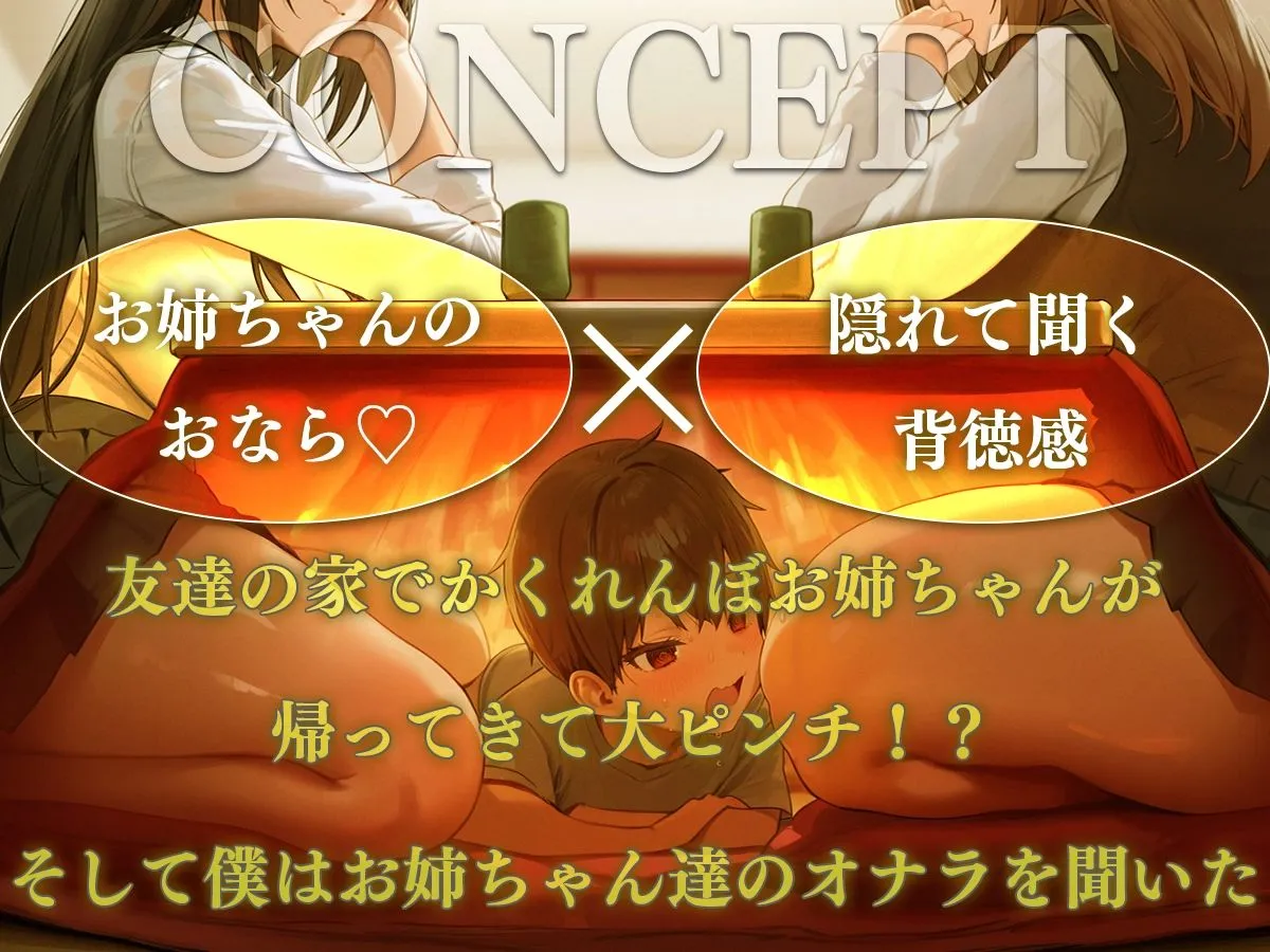こたつの中で密かに潜むあなたの耳にお姉ちゃんたちのおならが響く。
