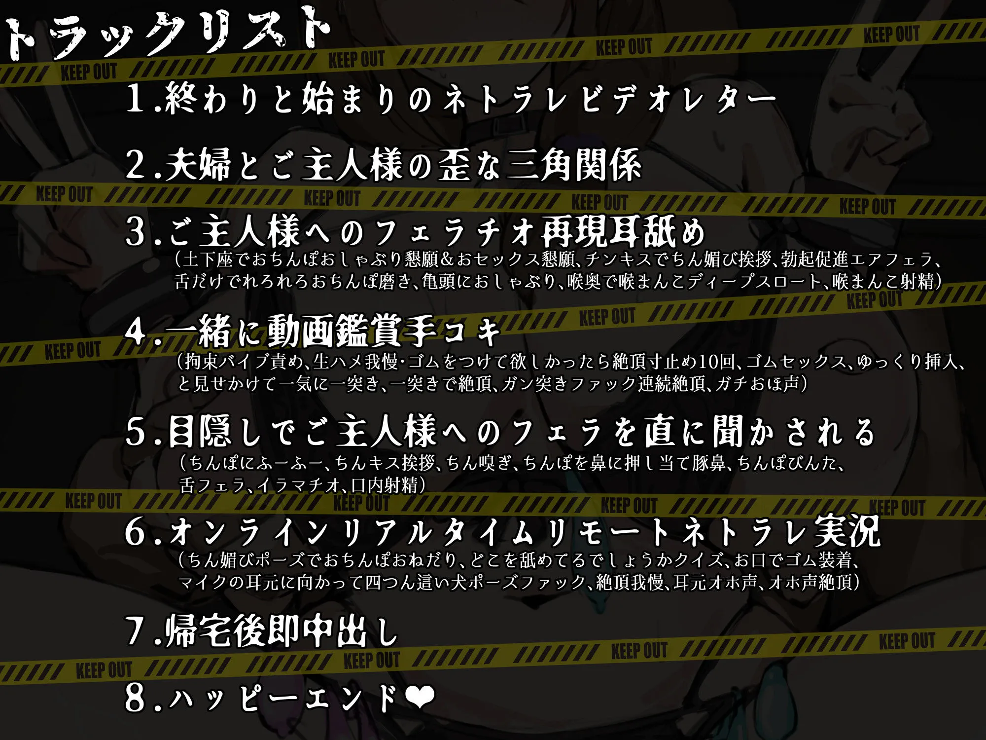 (ちん媚びポーズ懇願、どこを舐めてるでしょうかクイズ、お口でゴム装着、四つん這い犬ファック、絶頂我慢、耳元オホ声、オホ声絶頂)