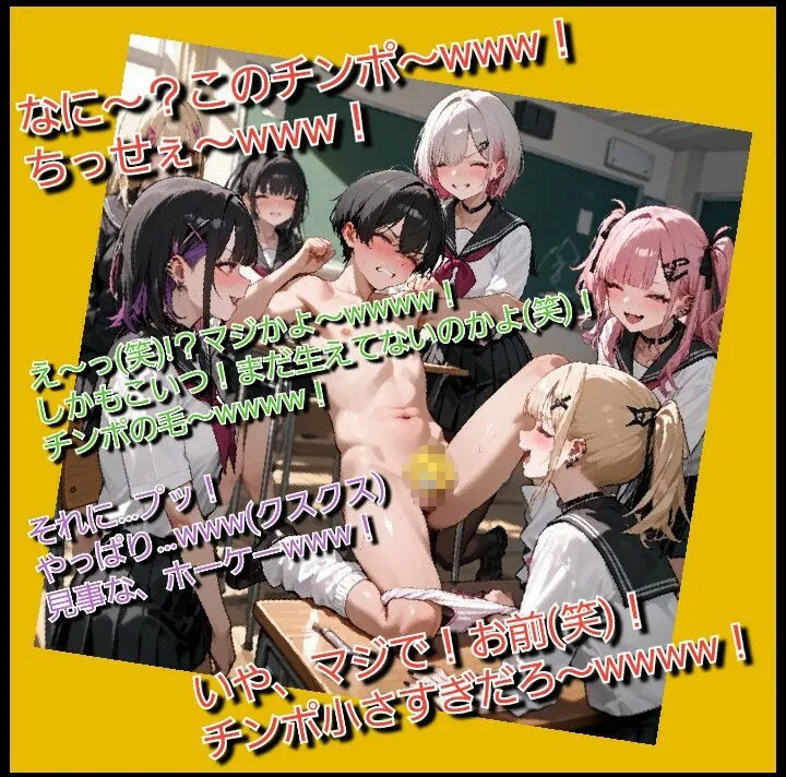 M男性向けシチュエーションボイス!同じクラスの女の子たちがみんな見ている目の前で、ヤンキー女子達に虐められて全裸にされる軟弱男子君!恥ずかしい短小包茎のパイパンお子様おちんちんを皆に見られて笑われて、写真まで撮られて脅されて…、最後は全裸公開オナニーを強要されて…。