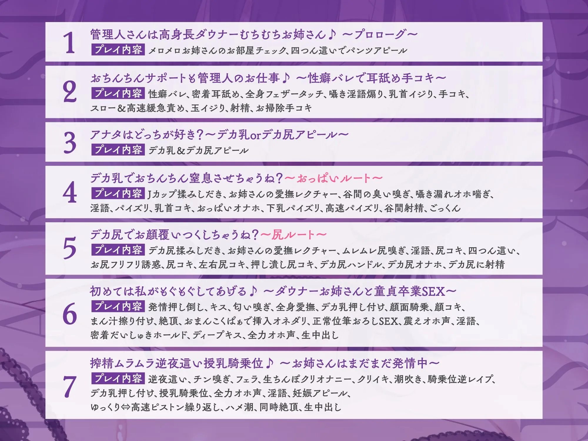 アナタにメロメロな178cmJカップの高身長ダウナーむちむちお姉さんに痴女られまくり♪ デカ乳ルートとデカ尻ルートでお姉さんの身体を味わい尽くせ…!アパートの管理人であるお隣のお姉さんに、あの手この手で求愛されまくる幸せ空間をお楽しみください♪『おっぱいとお尻…好きな方でヌいてあげるね…?』