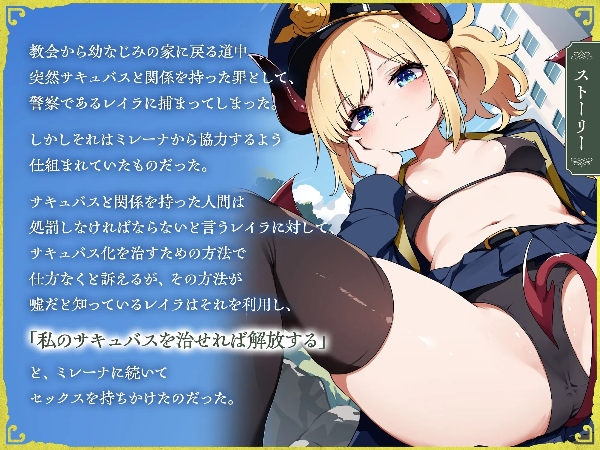 教会から幼なじみの家に戻る道中、突然サキュバスと関係を持った罪として、警察であるレイラに捕まってしまった。