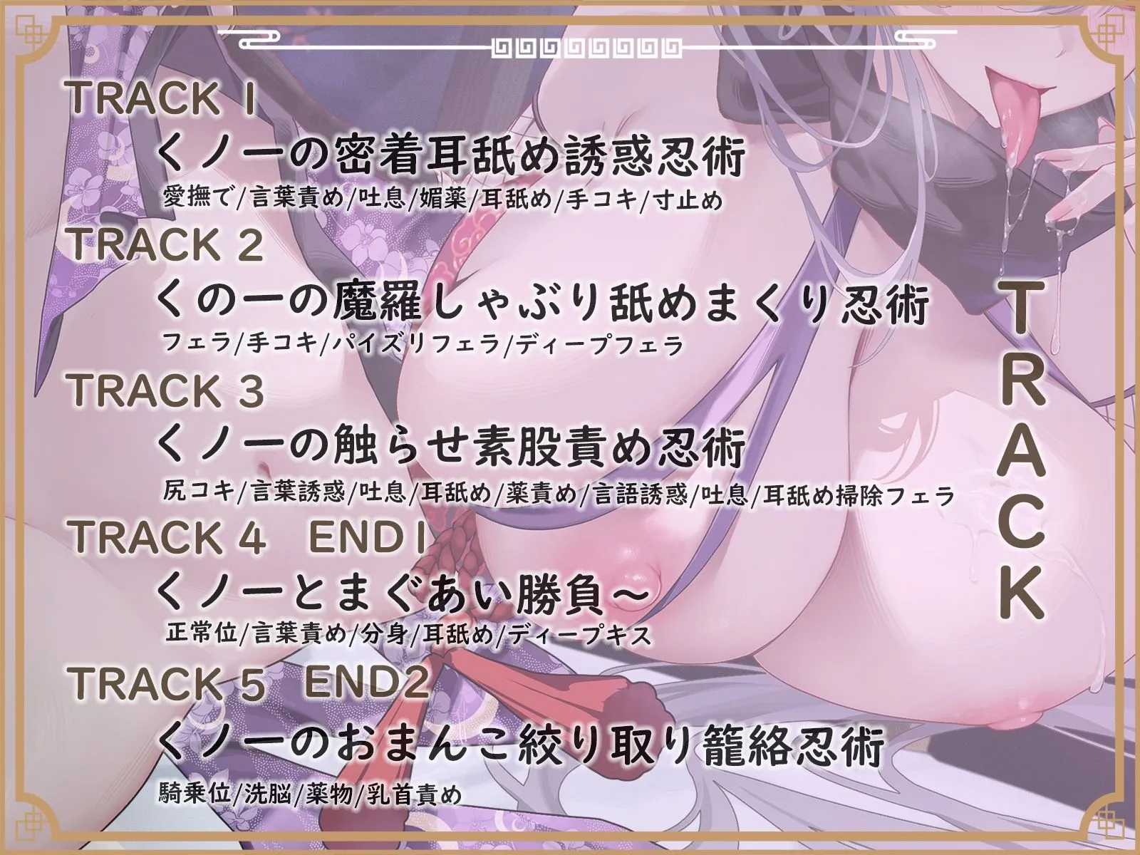 ・トラック2 くの一の魔羅しゃぶり舐めまくり忍術【おっぱい押しつけ・耳舐め・フェラ・パイズリ・パイズリフェラ・ごっくん】(15:14)