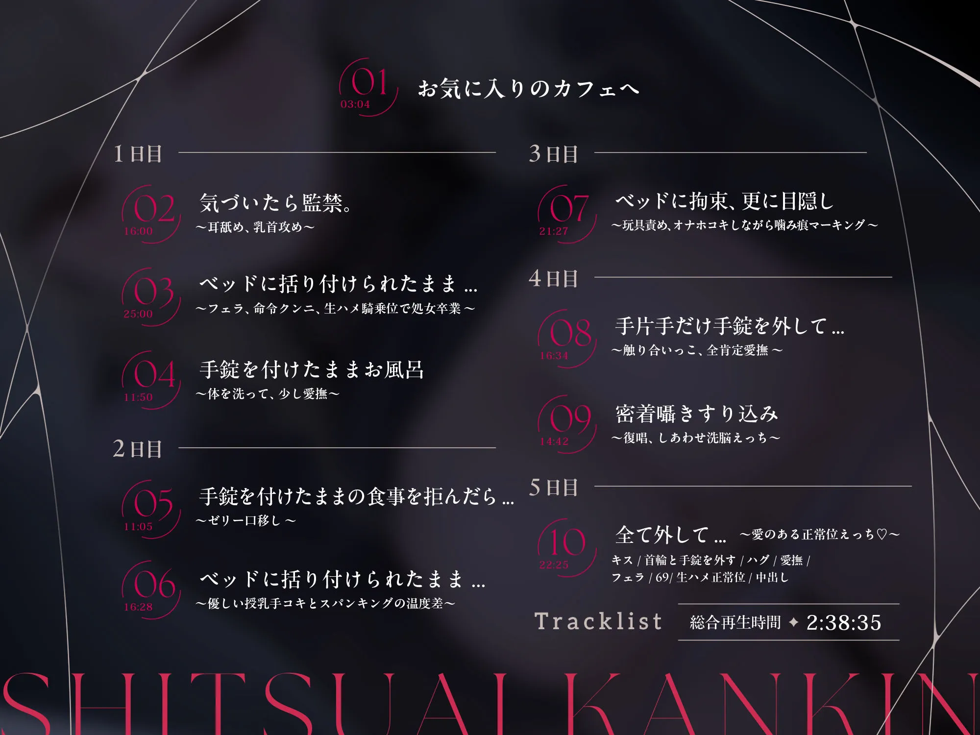 (密着囁き、片手のみ手錠、首輪、ハグ、生ハメ騎乗位、洗脳、復唱、騎乗位中出し射精)